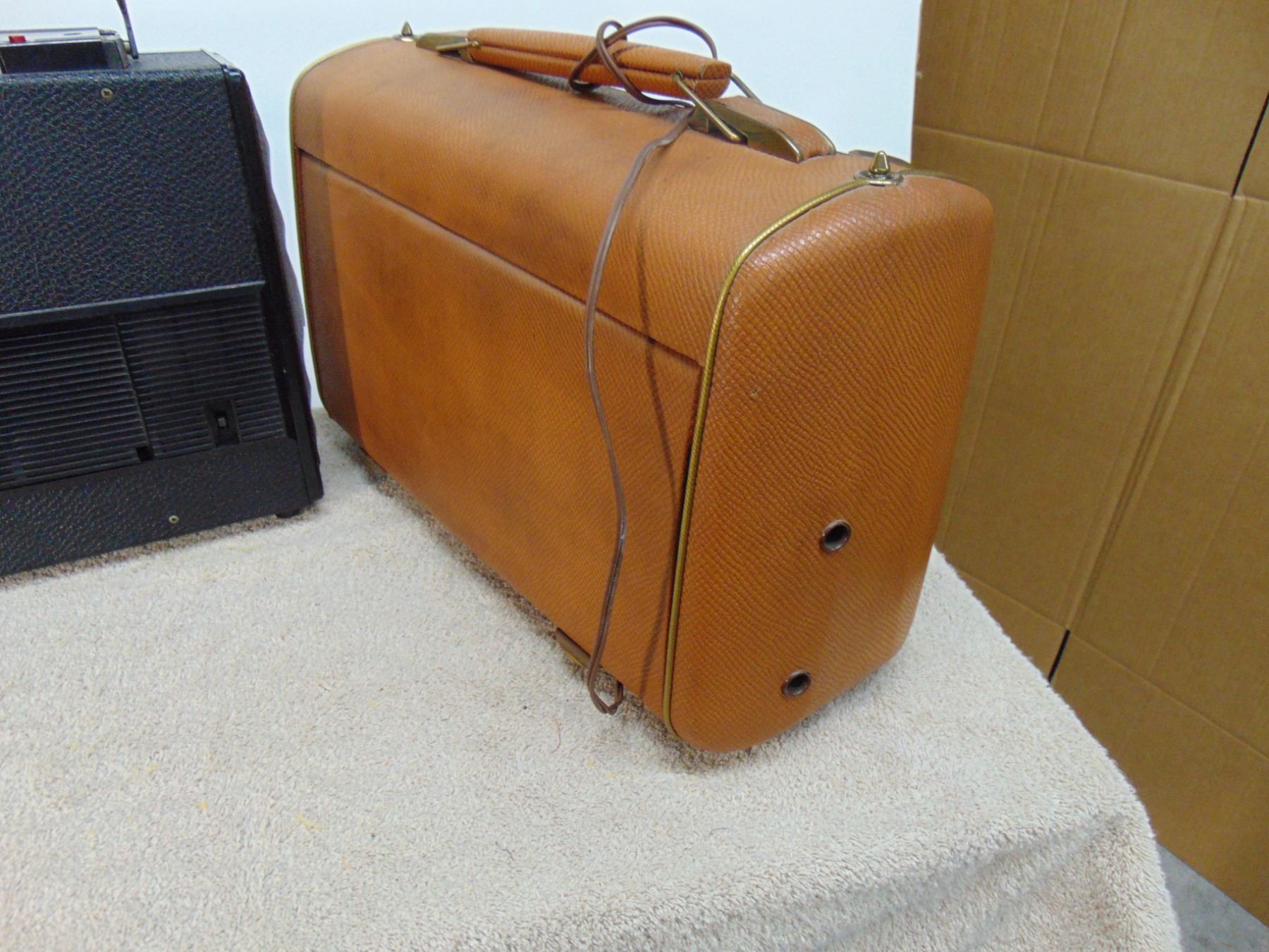 Two Grundig portables: 1) model TR 6002; AM/FM/SW; two of "slide knobs" missing on left front panel; rare set; 2) roll top portable, model FM-Concert Boy 57, AM/FM/SW, tube portable, mfg in Germany for U.S. export, leatherette cabinet, works, very nice condition