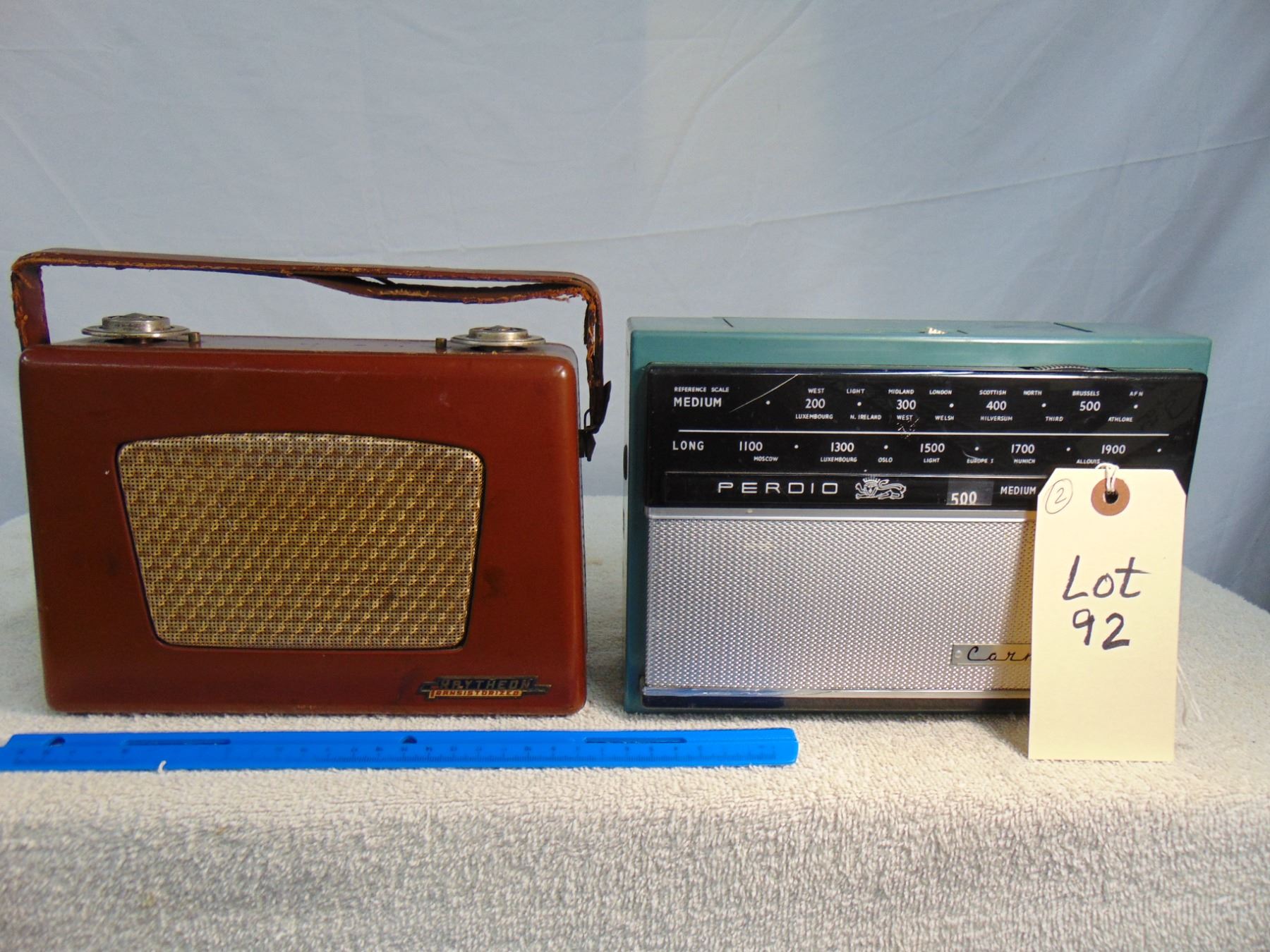 Two items: 1) Raytheon, early; 2) Perdio Carnival, long wave/medium wave transistor portable, nice