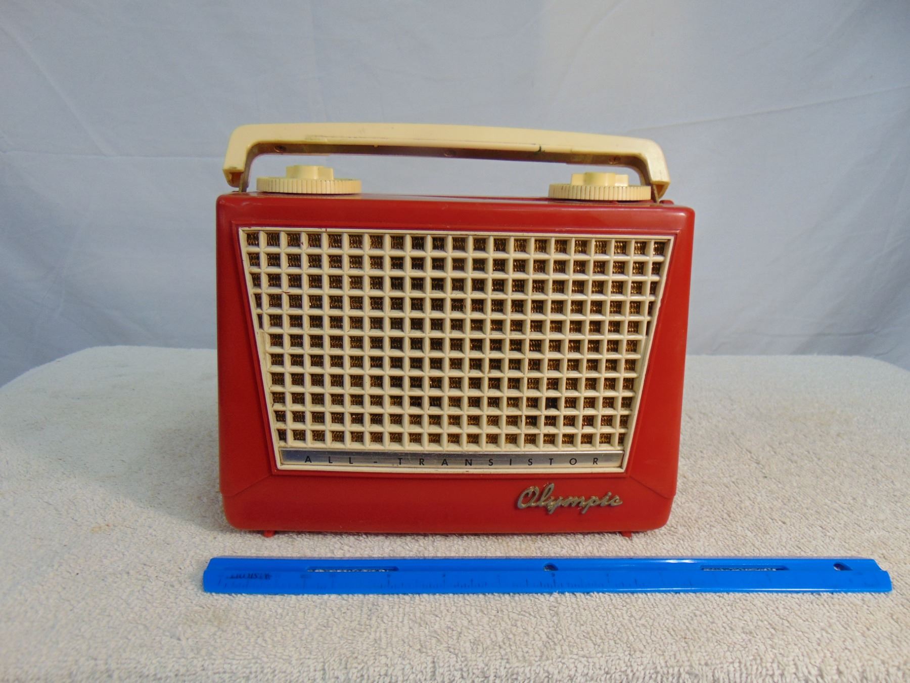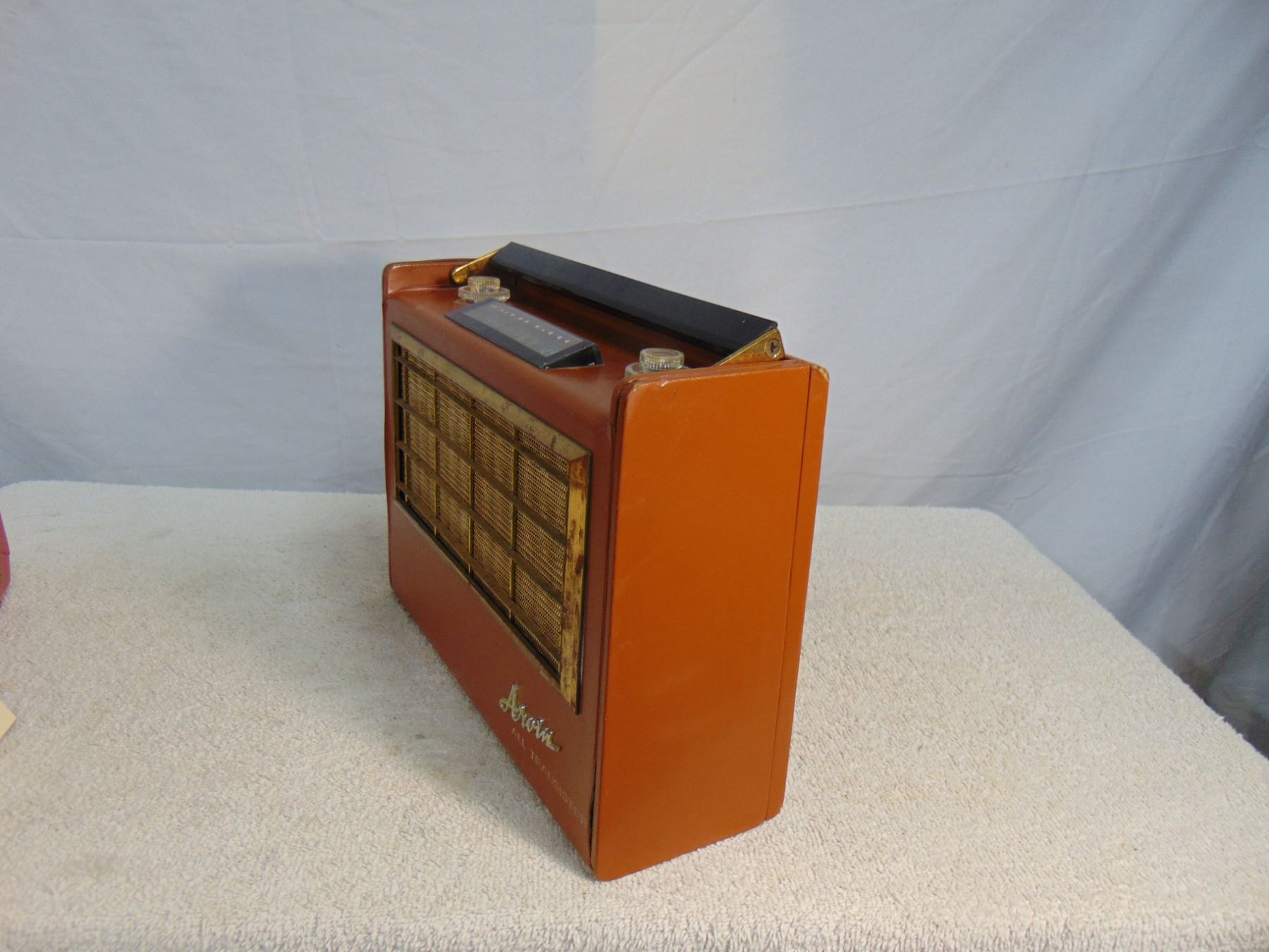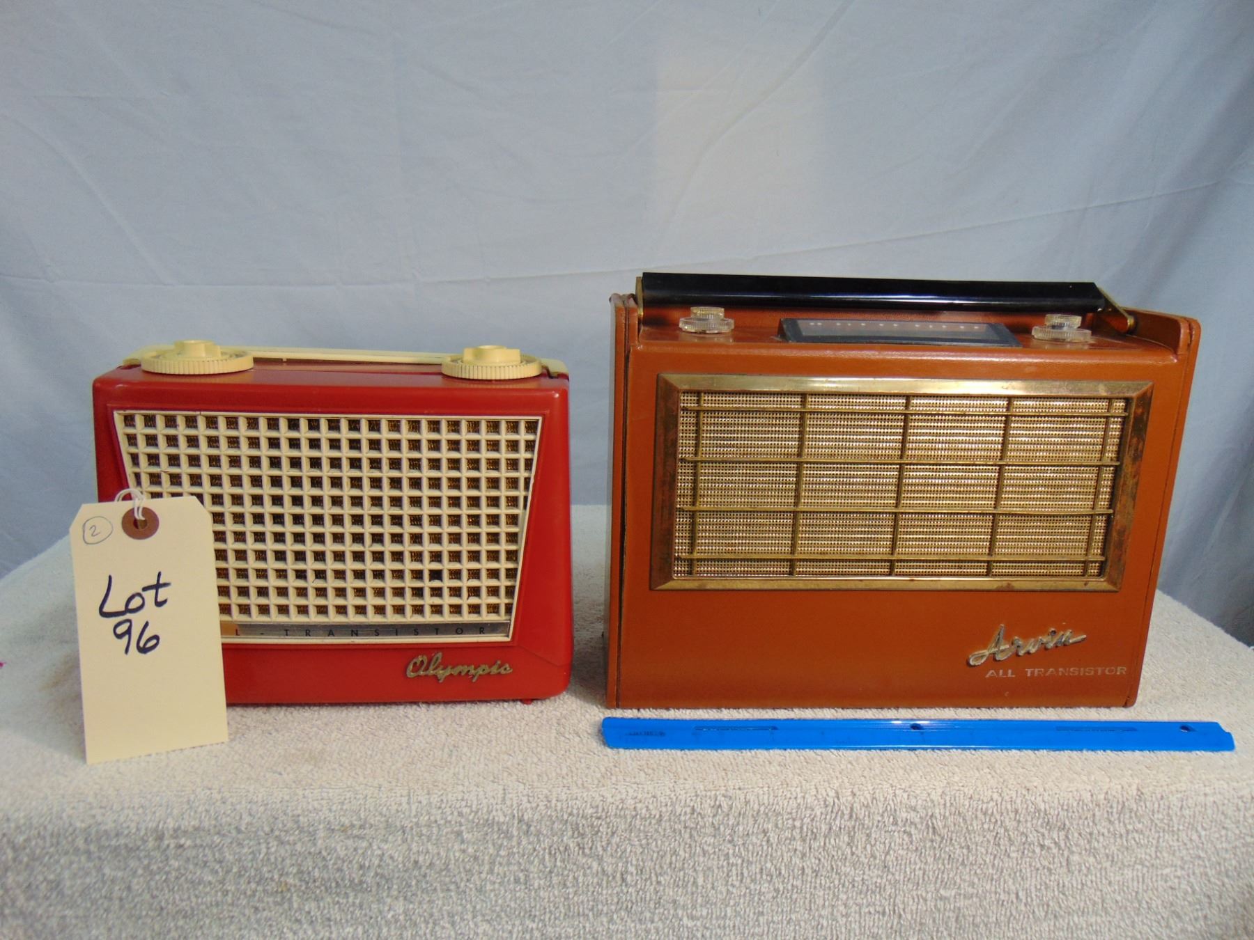 Two items: 1) Olympic All-Transistor, model 447, no chips, early, very nice; 2) Arvin, early AM, leather case, model 9562, no chips, very nice; great lot!!