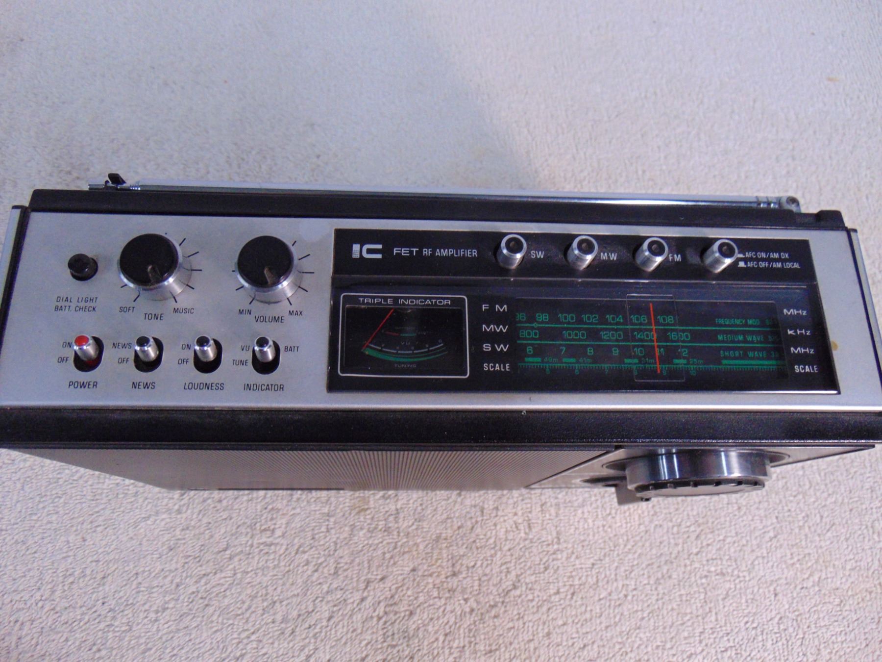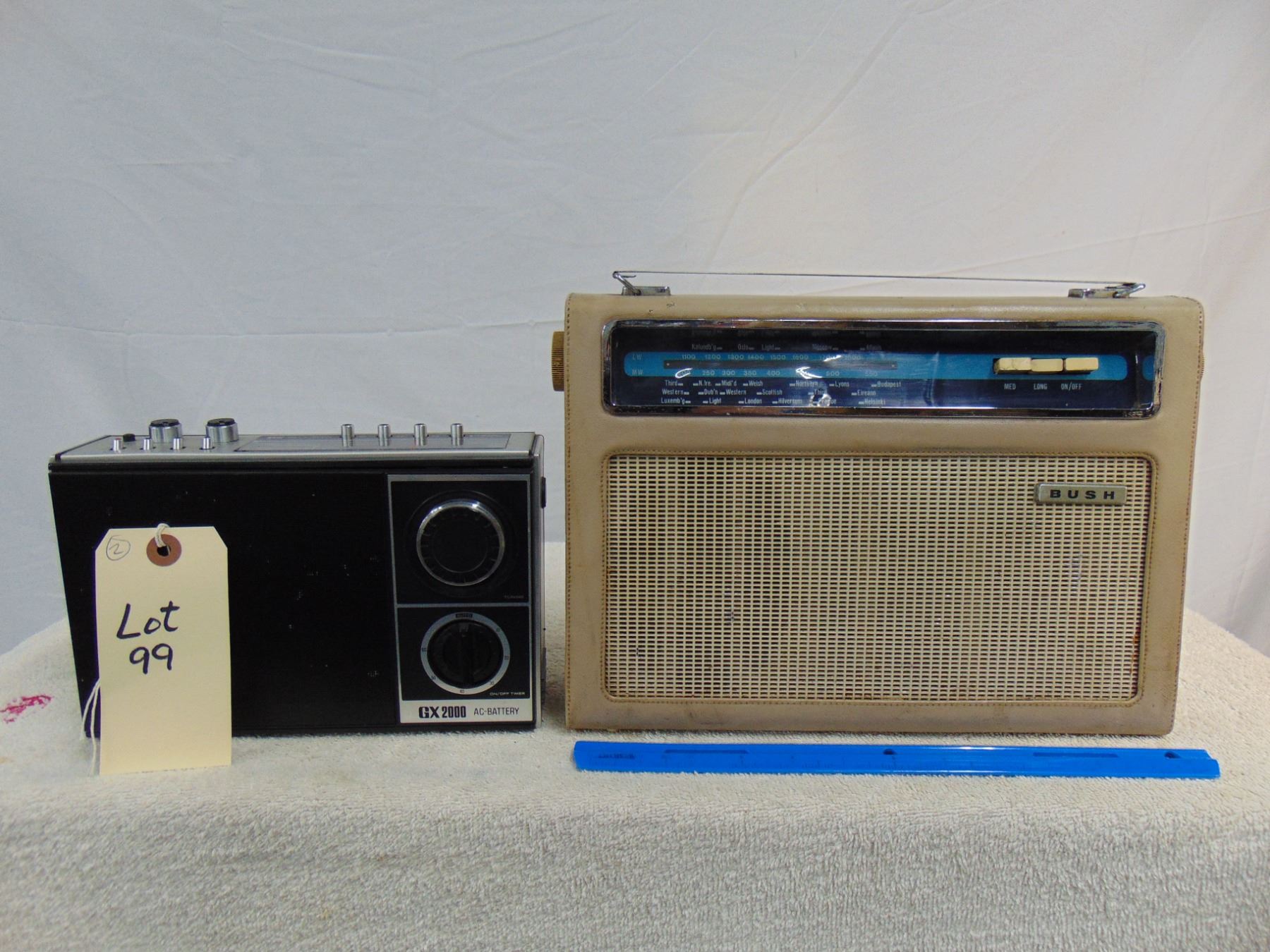 Two items: 1) National, model GE-2000, AM/FM/SW, nice; 2) Bush, model TR-112, medium/long wave, nice