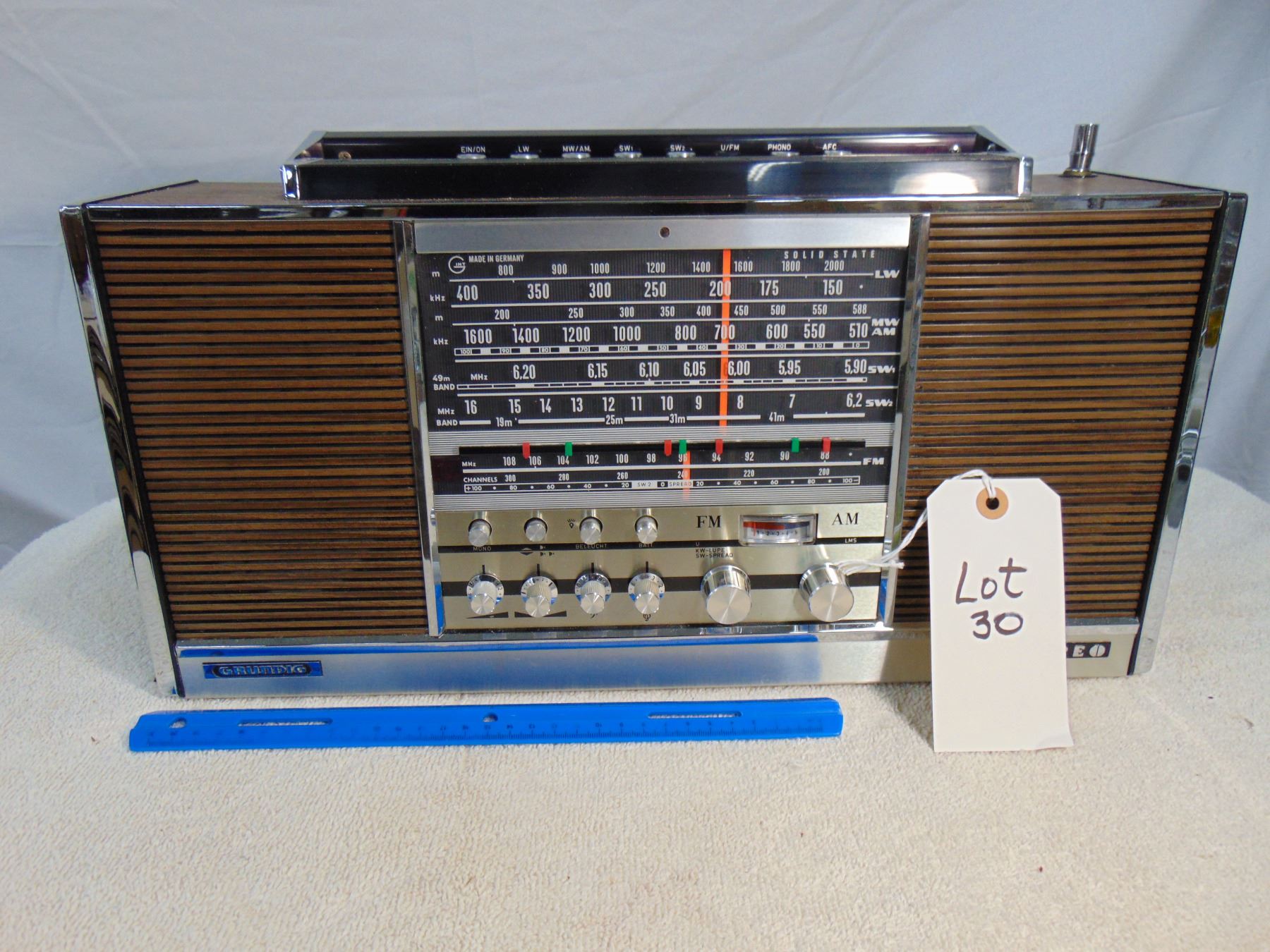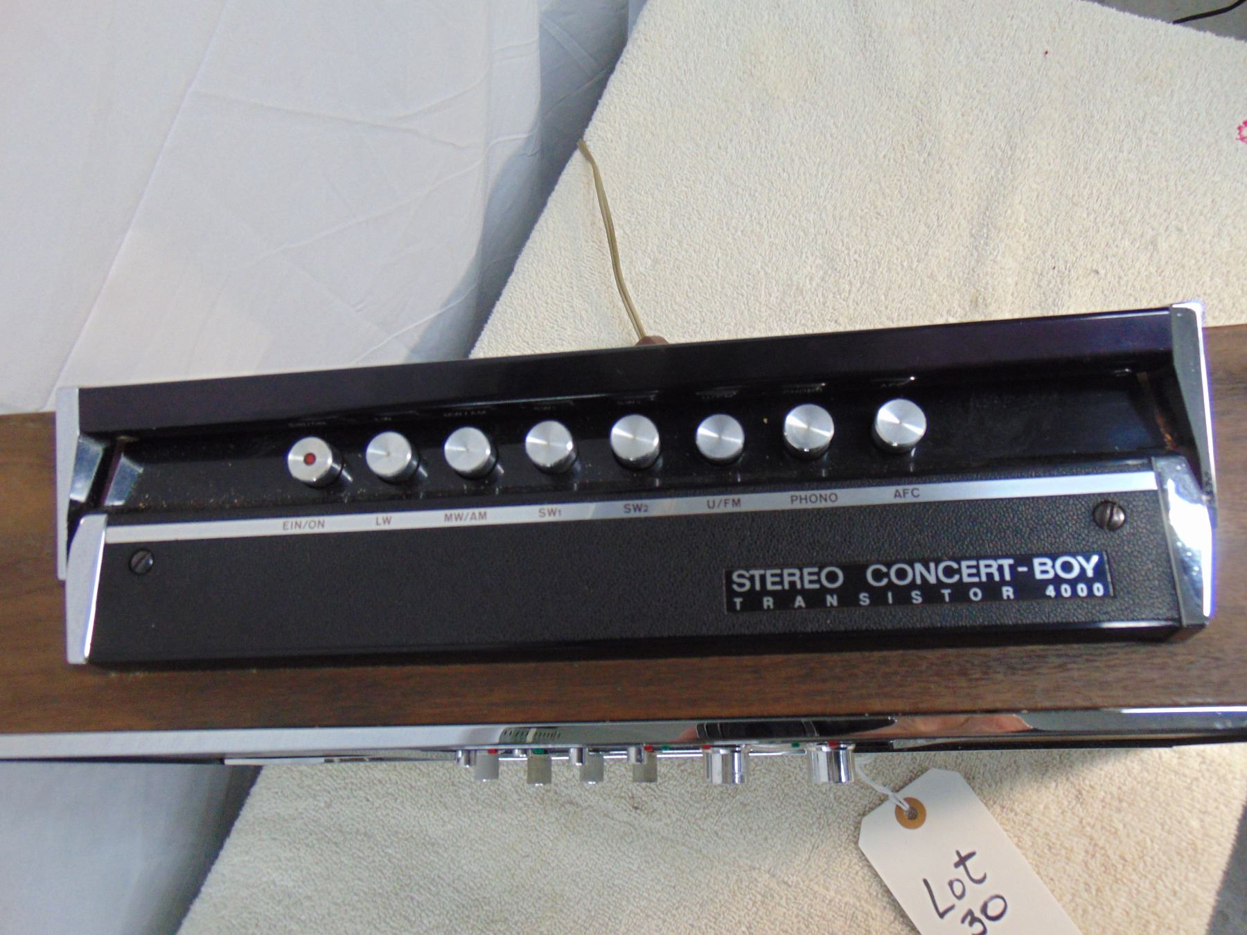 Grundig multi-band AM/FM stereo model Concert Boy Transistor 4000; works fine on FM. AM and SW dial slips so tuning not possible, however stations could be heard in background.