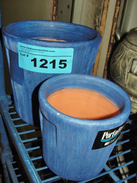 Portafino 2pc blue ceramic planter set