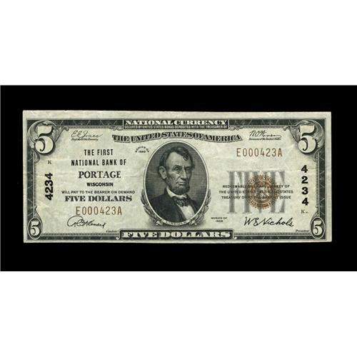 <B>Portage, WI</B></I> - $10 1929 Ty. 1 <B>The First NB </B></I> Ch. # 4234<BR>This crisp note is bright with strong margins and plenty of embossing still present. <B>Very Fine.</B></I>
