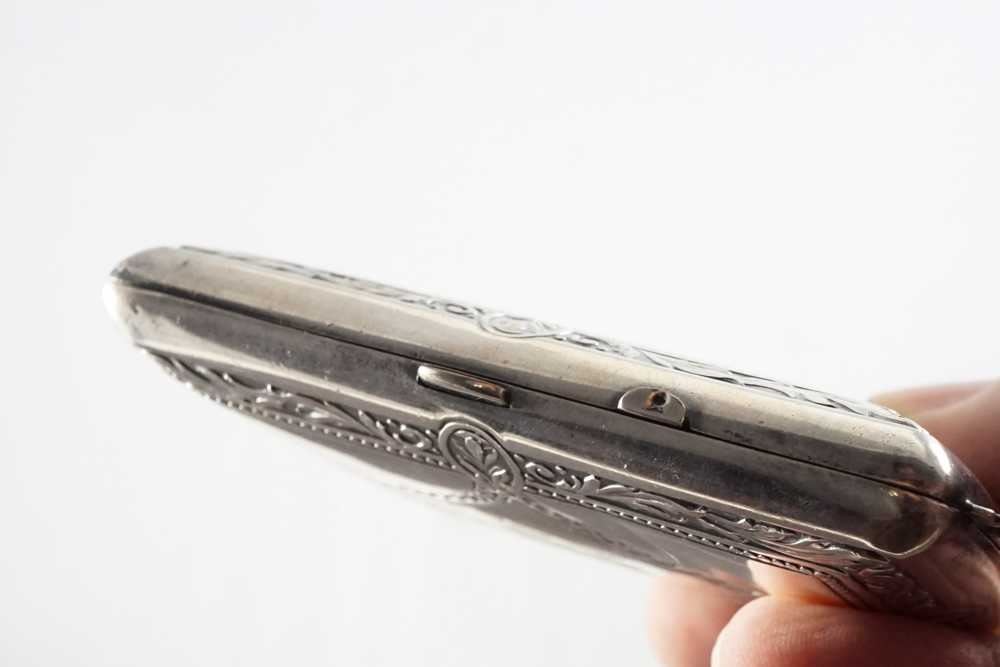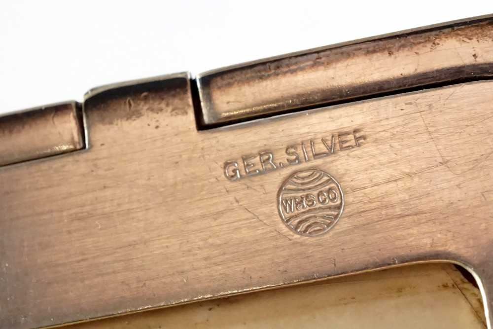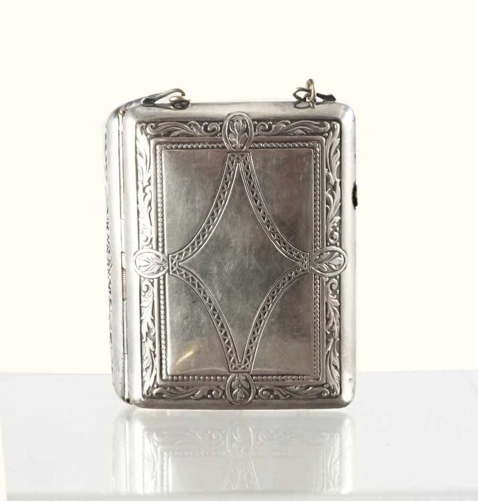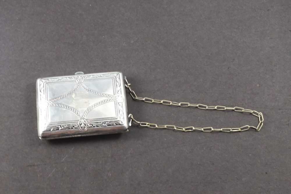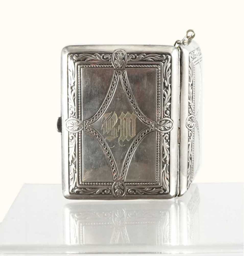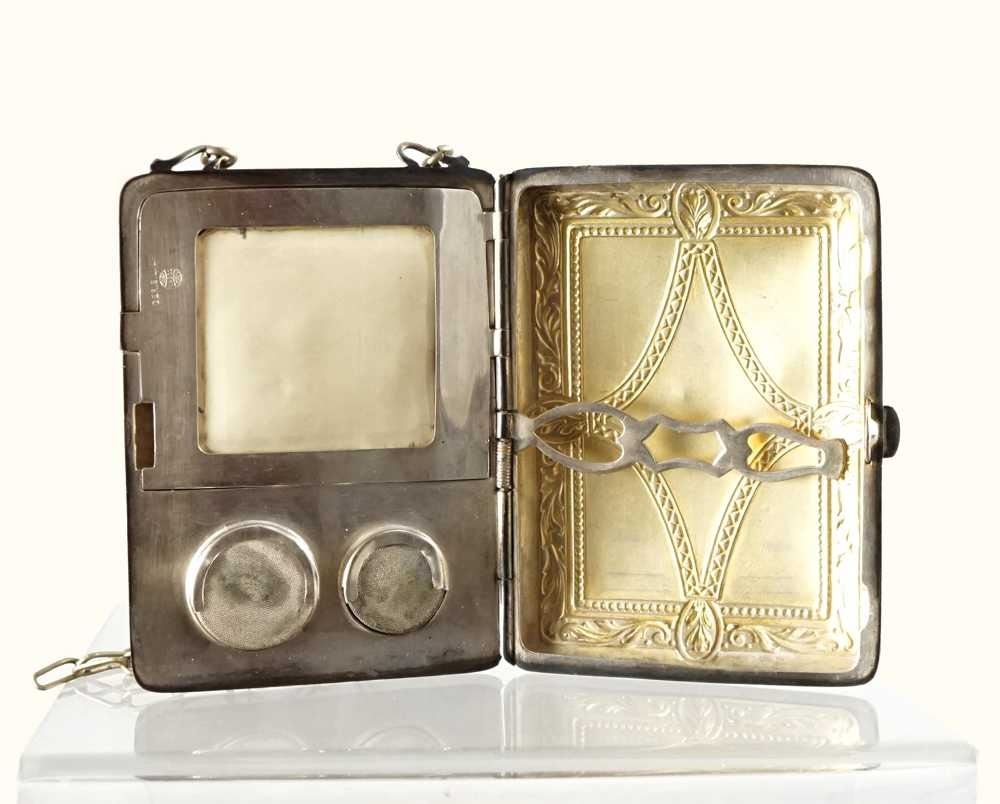 Porte-monnaie en argent sterling, avec miroir et porte-pieces (10 et 20 francs or ou 1/2 et 1 souverain). Poinçonne : GER SILVER. Poids total 119 grammes.