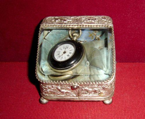 Porte-montre en forme de coffret, une glace biseautée, avec motifs de chasse