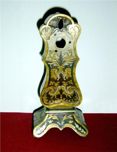 Porte-montre en laiton et argent, marqueté Boulle, en forme d'horloge de parquet
