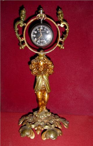 Porte-montre en régul polychrome représentant un personnage portant la montre sur la tête