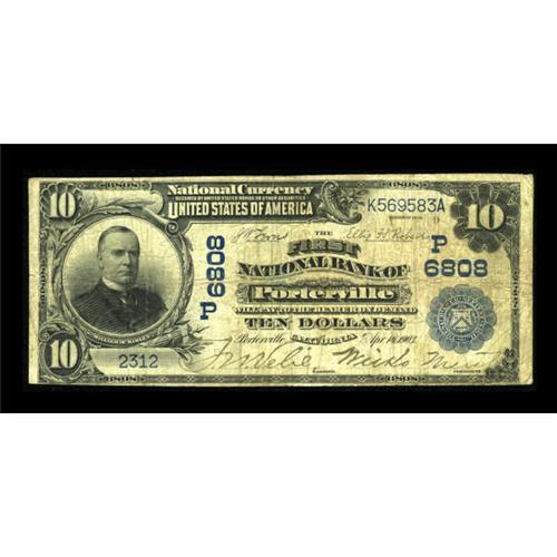 <B>Porterville, CA</B></I> - $10 1902 Date Back Fr. 616 <B>The First NB</B></I> Ch. # (P)6808<BR> A very scarce northern California bank with just five large examples recorded to date. This is the sixth, and the second Date Back. Pen signed <B>Very Good-Fine,</B></I> only the third example offered from here since 1990. <BR><I>From The Kansas City Collection.</B></I><BR><BR><b>Shipping:</b> Coins & Currency (<a target="_blank" href="http://www.heritageauctions.com/common/shipping.php">view shipping information</a>)