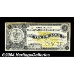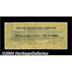 Portland, OR- Portland Clearing House Association $1, $2, $10 Nov. 2, 1907Three pieces, the $1 and $10 Extremely Fine, cancelled and unused, while the $2 is issued and a well used Very Good. <BR><BR><B>Important notice:</B> Heritage usually auctions material at the rate of 200-250 lots per hour. On some occasions eBay Live bid software or the Internet may not be able to keep up with the pace of the auction. We recommend placing a realistic absentee bid now as insurance to avoid disappointment. Occasionally the auctioneer may eliminate or reject an eBay Live bid, and the auctioneer may also reopen a lot after the close of the eBay live bidding (usually because we missed an audience bid), and may reject your bid even if it shows you as the winning bidder. By bidding via eBay Live, you agree that Heritage may award the lot to another bidder at its sole discretion under the circumstances described above or any other reasonable circumstances. Since eBay bids are not shown to us until we open the lot on the floor, we treat those bids just like floor bids. In most cases the floor responds before the eBay bid is presented to us, due to Internet lag time, so for consistency we have made it a policy that floor bids are always considered first over tie eBay live bids. Also please note that all Heritage lots purchased through eBay Live carry a 20% Buyer's Premium. Please make sure you read the Terms and Conditions before you bid. <BR><BR><B>IMPORTANT ANNOUNCEMENT ABOUT RESERVES:</B> Heritage now divulges all reserves on its web site 7 days before every auction. If you want to know whether the reserve on this lot has been met, and if not, what the reserve amount is, please visit this lot page on the HeritageCoin.com web site, or email: bid@HeritageGalleries.com