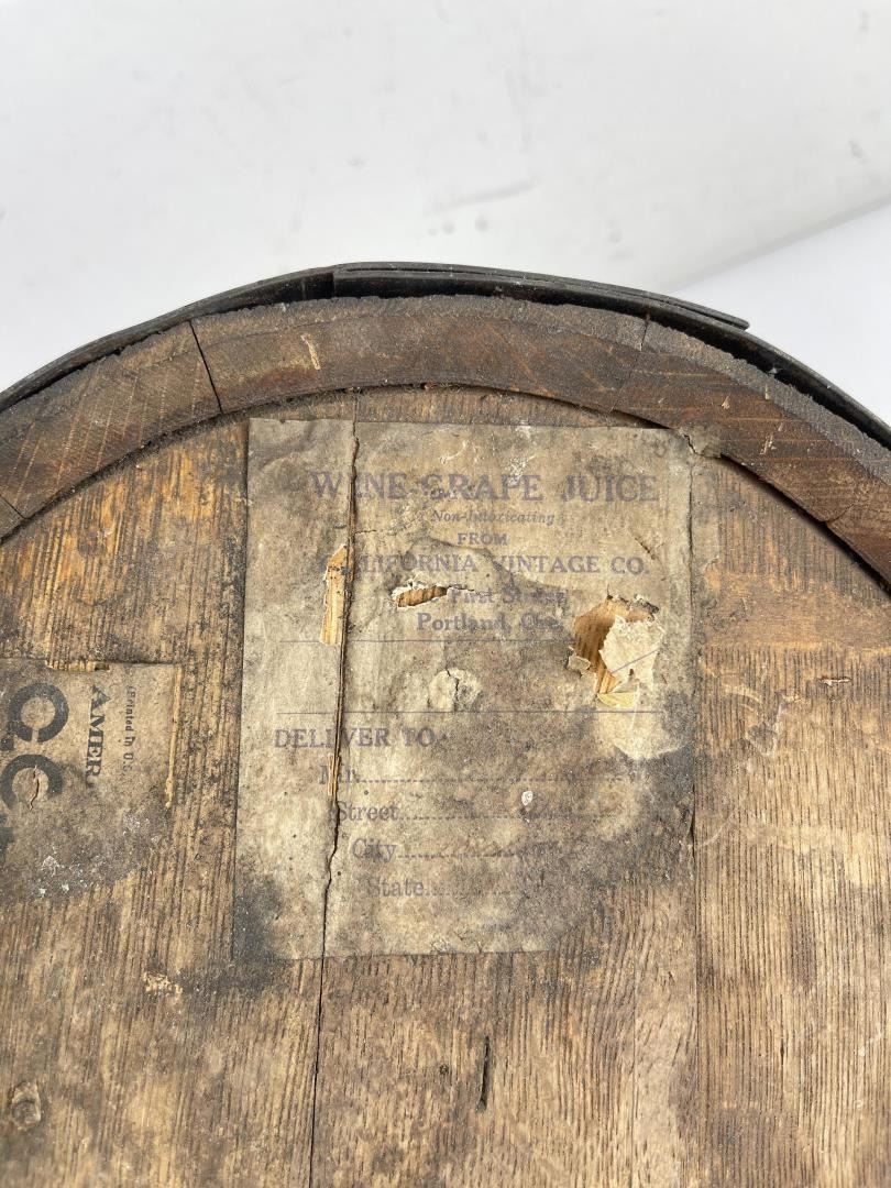 Label says Wine Grape Juice. California Vintage Co Portland Oregon. 11 3/8" diameter, 17 1/2" long.