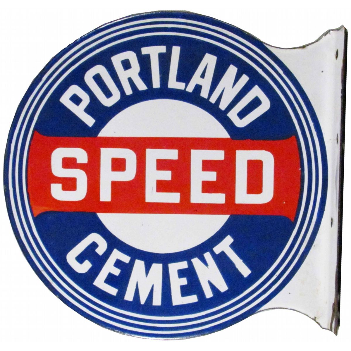 Portland Speed Cement Porcelain Flange Sign, two sided. A couple of small chips around edges otherwise very good condition. 10 inch diameter.
