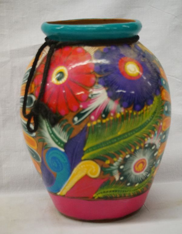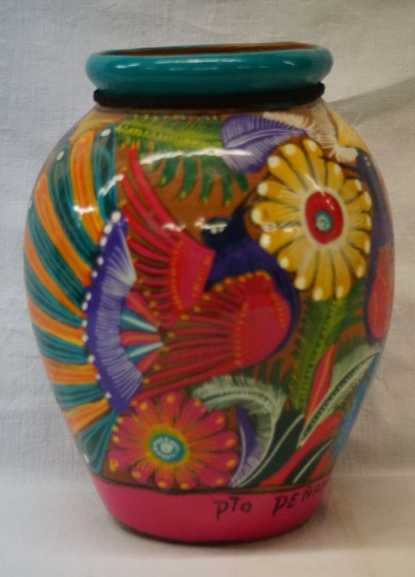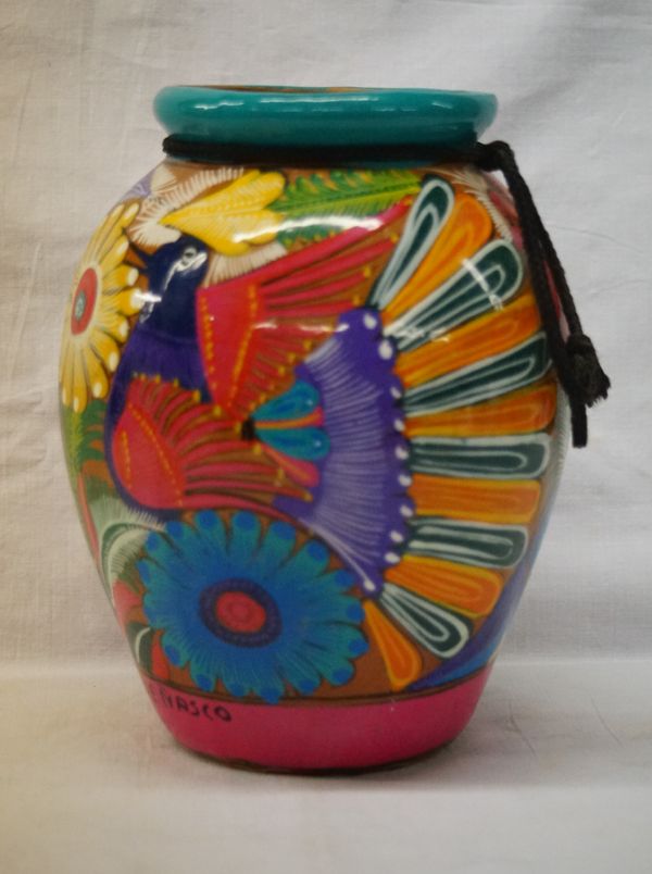 Porto Penansco Mexican Vase, measures 7'' x 6'', brightly painted and glazed