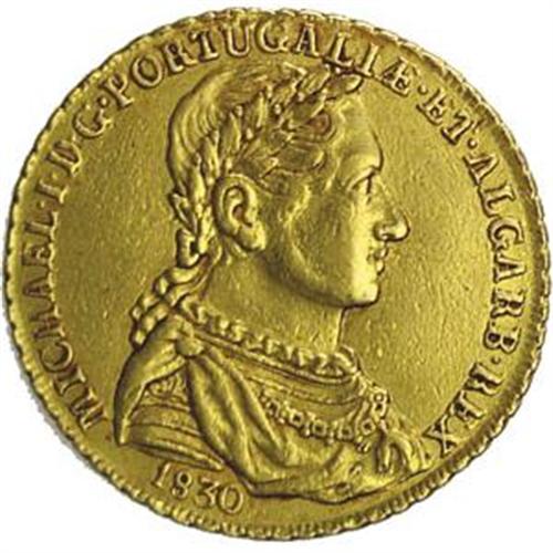 Monete e Medaglie Estere. Portogallo. Michael I (1828-1834). 2 escudos (1/2 paca) 1830. KM 396, Fr.116. RRR. AU. Impercettibile traccia di montatura (?) BB+. 525 pezzi coniati.