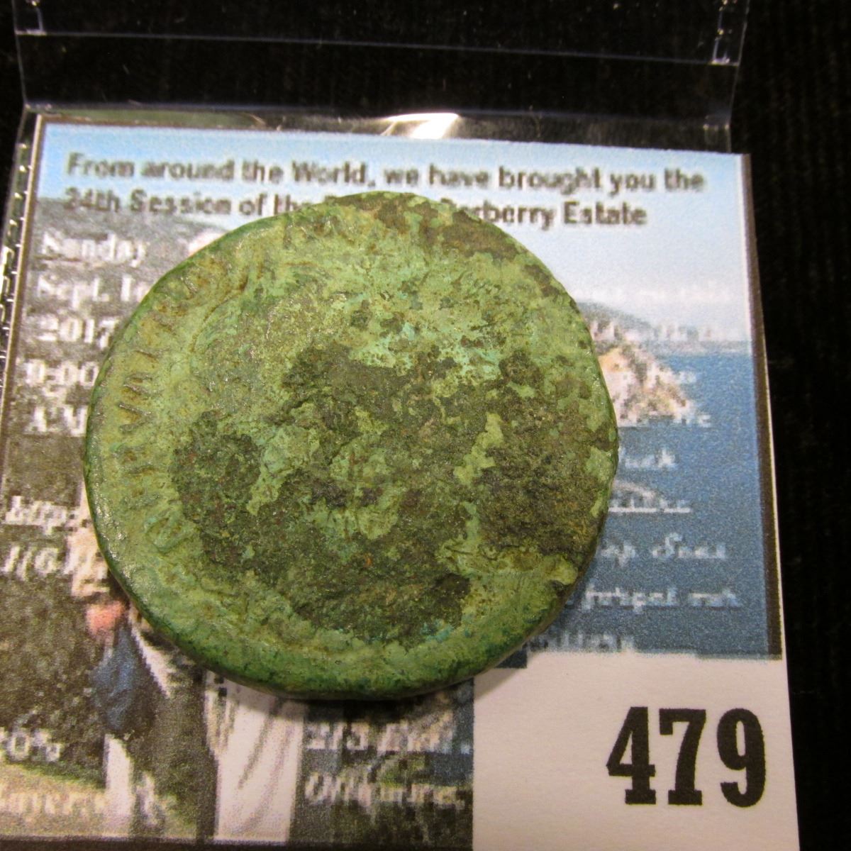 Portrait Bronze Ancient Sestertius, a little careful research could identify this Ruler, but the heavy green patina prevents me from doing so immediately, so I am passing the bargain on to you.