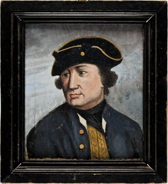 Superb Historic Portrait of Commodore Robert (i.e.) Esek Hopkins Esqr., Revolutionary War Commodore & American Naval Commander-in-Chief Handcolored Gouache