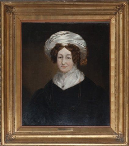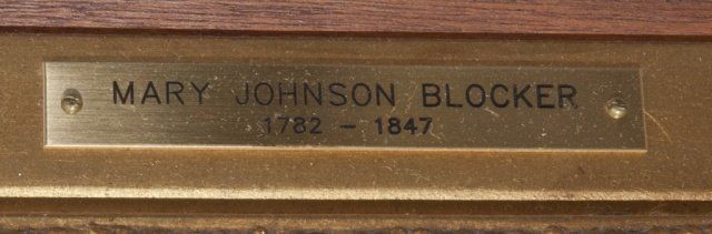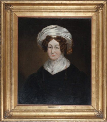 Portrait of woman in turban. Plaque beneath states, "Mary Johnson Blocker 1782-1847". 19th century. Unsigned. Gilt gesso frame. 29" x 25 1/4". Frame: 40" x 35".