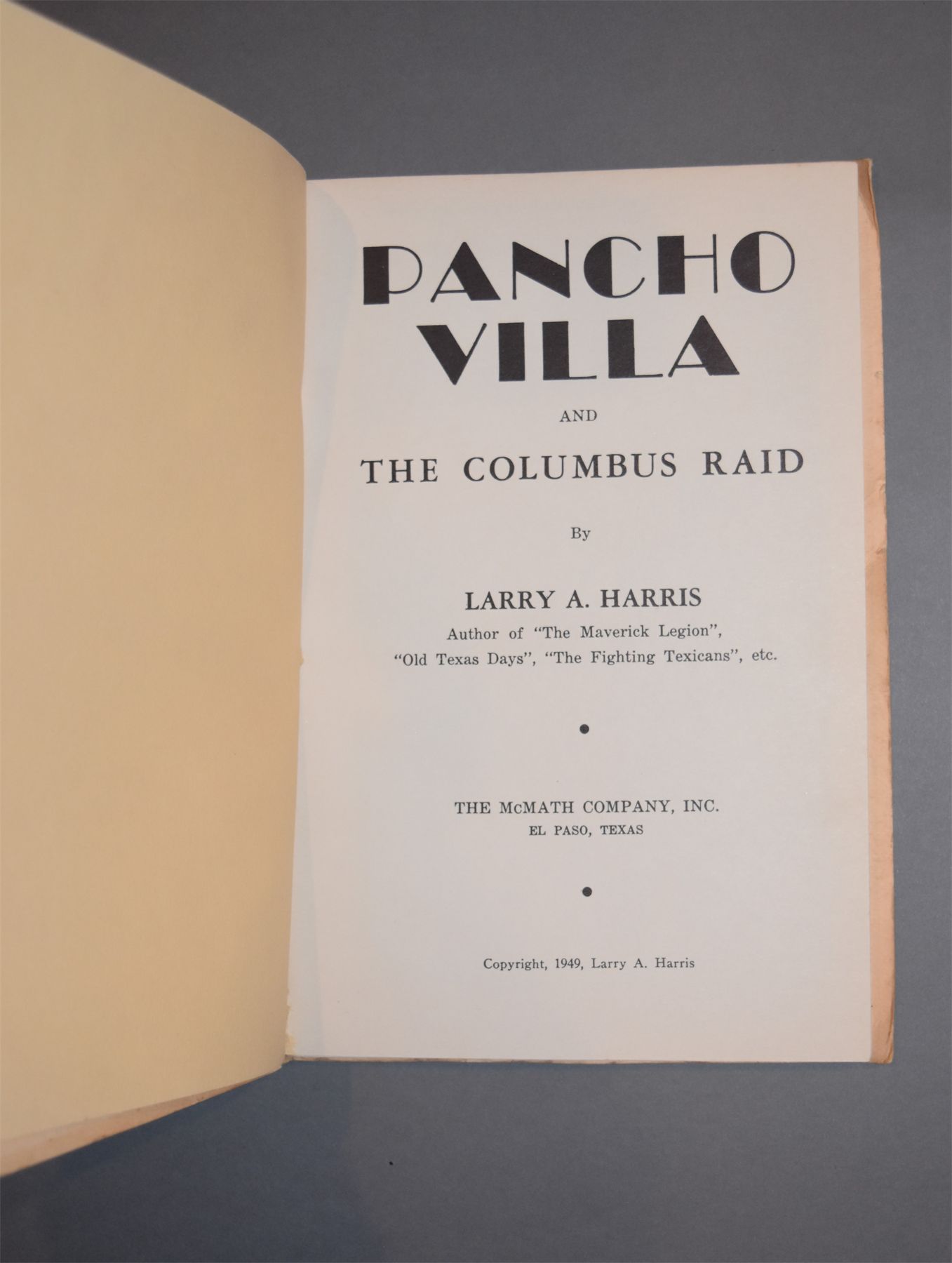 Booklet: "Pancho Villa and the Columbus Raid" by Larry A. Harris, Copyright 1949