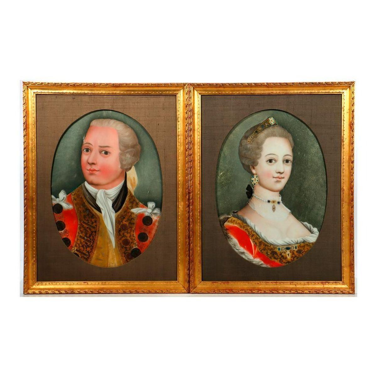 Artist: Unknown. Title/Subject: Lady and gentleman in 18th century style dress (a pair). Size: 17 1/4in x 12in (sight); 23in x 17 3/4in (frames). Year Created: c. 20th Century. Signature: Unsigned. Medium/Ground: Reverse and surface painted plaques. Condition: Good; some surface soiling. Condition Report: All lots are sold as is and where is. Turner Auctions + Appraisals, LLC provides condition reports upon request to aid in your bidding decision. No statement regarding age, condition, kind, value, or quality of a lot, whether made orally at the auction or at any other time, or in writing in this catalog or elsewhere, shall be construed to be an express or implied warranty, representation, or assumption of liability. All sales are final, Turner Auctions + Appraisals, LLC does not give refunds based on condition. Turner Auctions + Appraisals, LLC does not perform any shipping or packing services. We do have a list of suggested shippers who gladly provide quotes prior to your bidding. Please visit our webpage for a list of recommended shippers.