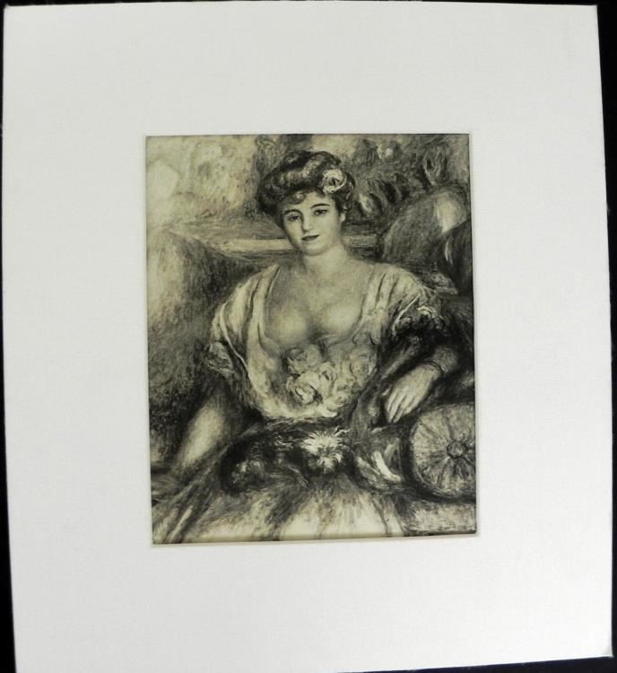 Artist: Pierre-Auguste RenoirTitle: Portrait de Madame (Portrait of Madam) - from 1921 Et Ses AmisMedium: Gravures "hors texte" (Engraving)Matte: SilkImage size: 7 1/4" x 5 3/4"Matte size: 12" x 11"Justification du Tirage (Justification of Drawing): Affixed to the back of the foam-core backingCondition: Very good**Justification du triage: At the beginning or at the end of a volume, it is the indication given by the editor of a print edition, specifying the different types of copies published and paper used.BiographyAn innovative artist, Pierre-Auguste Renoir was born on February 25, 1841, in Limoges, France. He started out as an apprentice to a porcelain painter and studied drawing in his free time. After years as a struggling painter, Renoir helped launch an artistic movement called Impressionism in 1870s. He eventually became one of the most highly regarded artists of his time. He died in Cagnes-sur-Mer, France, in 1919.*retrieved from: http://www.biography.com/people/pierre-auguste-renoir-20693609#synopsis