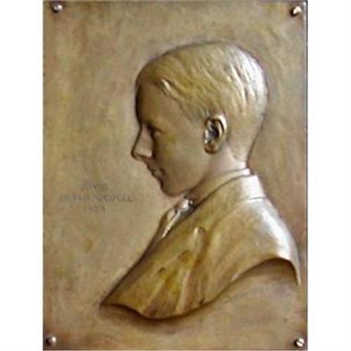 Bronze plaque relief profile bust portrait of David Nicholl.