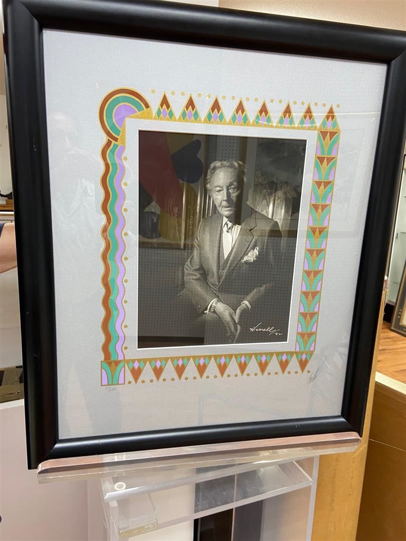 A framed photograph by legendary Hollywood photographer HURREL, signed by both HURRELL M& ERTE with matboard designed by ERTE. # 31/150. Matted 24x20", framed (as is ) 27.5x23.5" f l