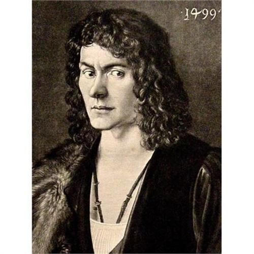 Extraordinary 1930's art print after Albrecht Durer's portrait of Oswolt Krel, 1499. In good condition, mounted on a dark grey paper as shown. Please ask questions, request additional photos and shipping costs before buying.