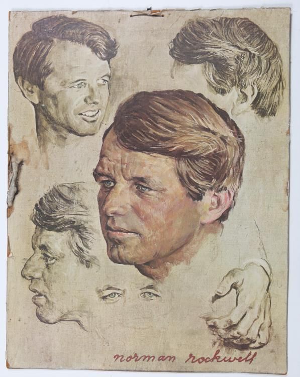Up for sale we have an original Portrait of Robert F. Kennedy by Norman Rockwell. This may be an artist's proof of the original oil painting by Norman Rockwell that was created in 1968, but we do not know for sure. It was created as part of a series of paintings by Rockwell for Look Magazine during the election year. This could be a rare collectible art piece, in that the measurements are larger than the original painting that is located in the Norman Rockwell Museum. We could not find another available anywhere! The size is 22.5" x 29".