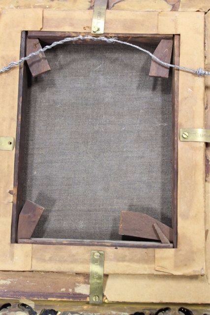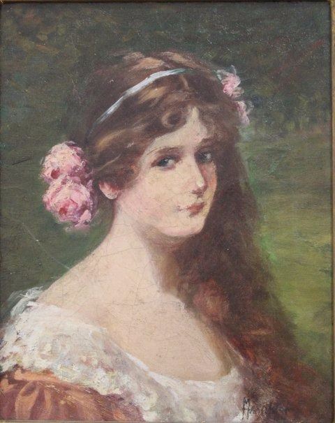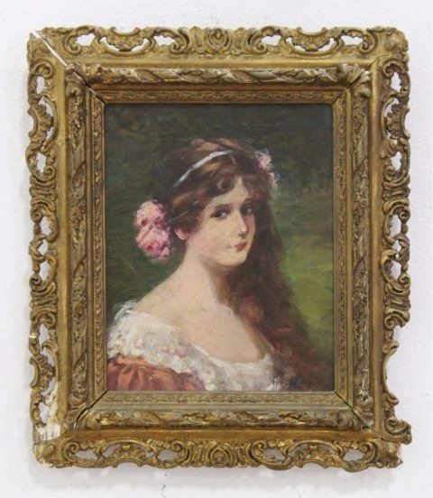 Oil on canvas. Signed illegibly, Hamilton?  Approx. 10" H x 8" W unframed. Relined,  restored, losses, and damges.