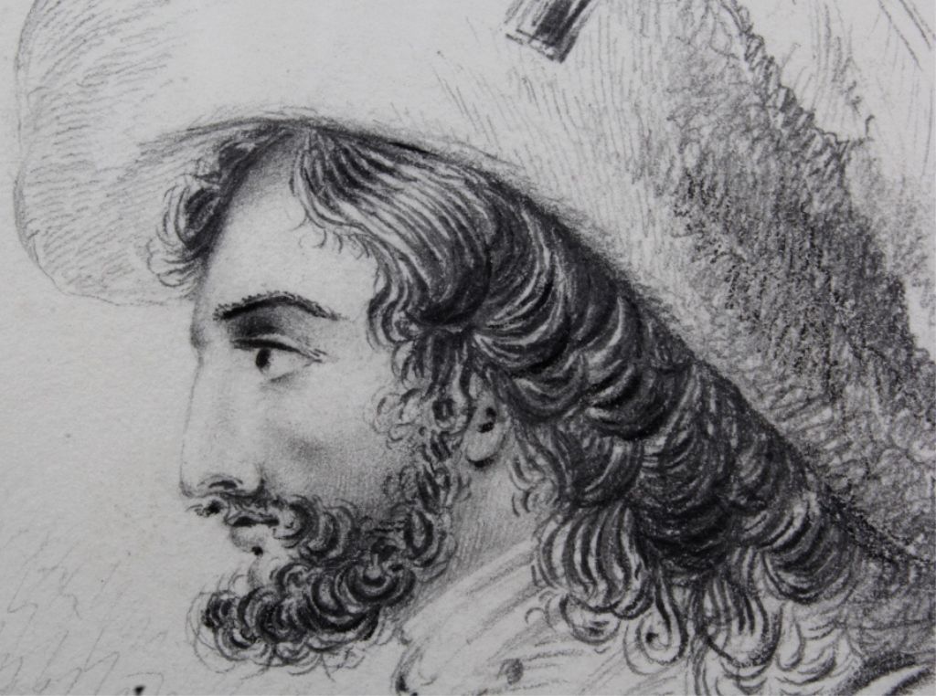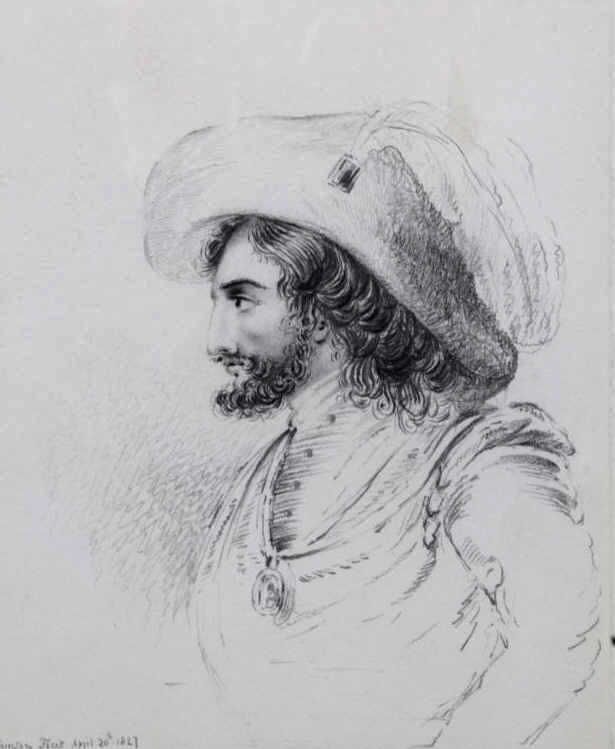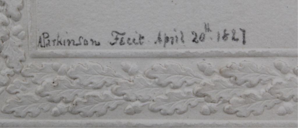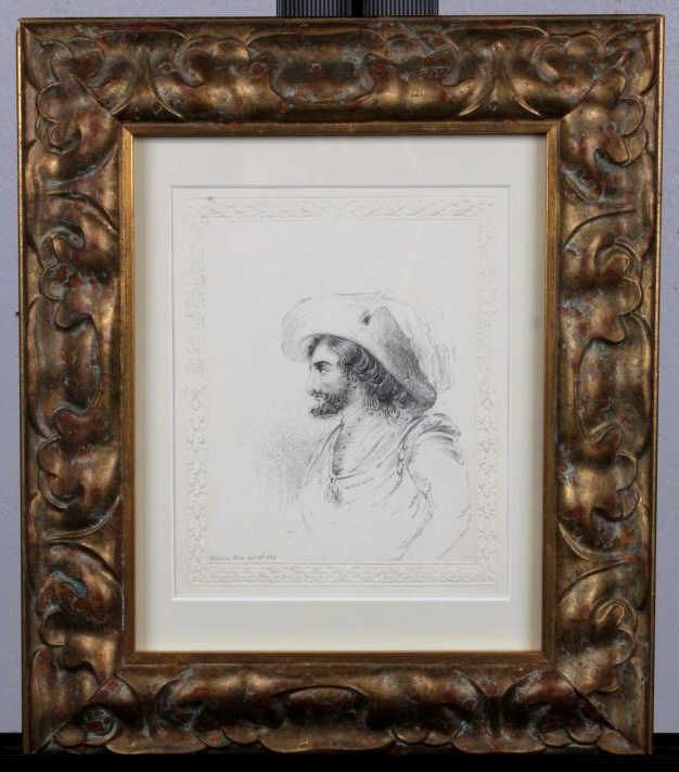 This is a Original Graphite artwork portrait of a man in 16th century clothing. The drawing was done in 1827 and is an original work of art hand made depicting the 16th century man in fantastic details. This has a unique embossed paper framing and very ornate. This was done by A. Parkinson and is hand signed and dated in graphite. This piece shows a small foxing piece and small stain, but is in an acid free framing to preserve the piece. The frame measures 13.75"x11.625" and the original artwork is 7"x5.75"