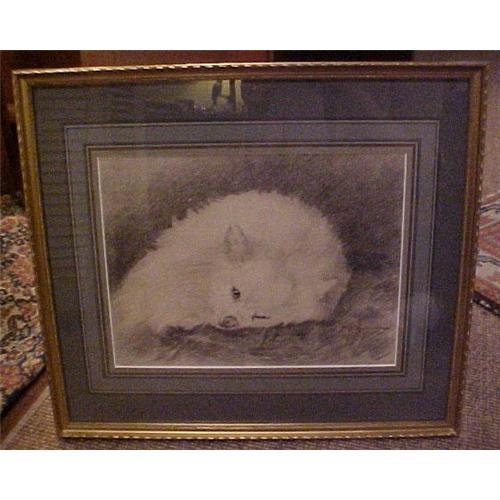 </font></strong>Charming and endearing portrait of a small dog by Jean-Jacques Rousseau, French, 1861-1911. Rendered in black ink and black chalk on card, it is signed. Comes from a private collection in Lyon. The overall dimensions are 18" by 16", the sight dimensions are 12" by 9".</font>