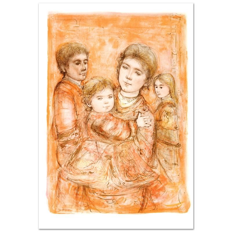 "Portrait of a Family" is a limited edition lithograph on paper, numbered and hand signed by Edna Hibel (1917-2014). Includes Certificate of Authenticity! Measures approx. 31.5" x 44" (with border), 28" x 40.5" (image).