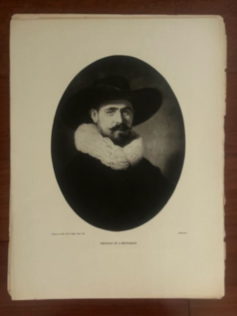 Antique reproduction of Rembrandt etching of a Dutch nobleman, on paper 16.5 " x 12.5", image approx. 10.25 x 8"
