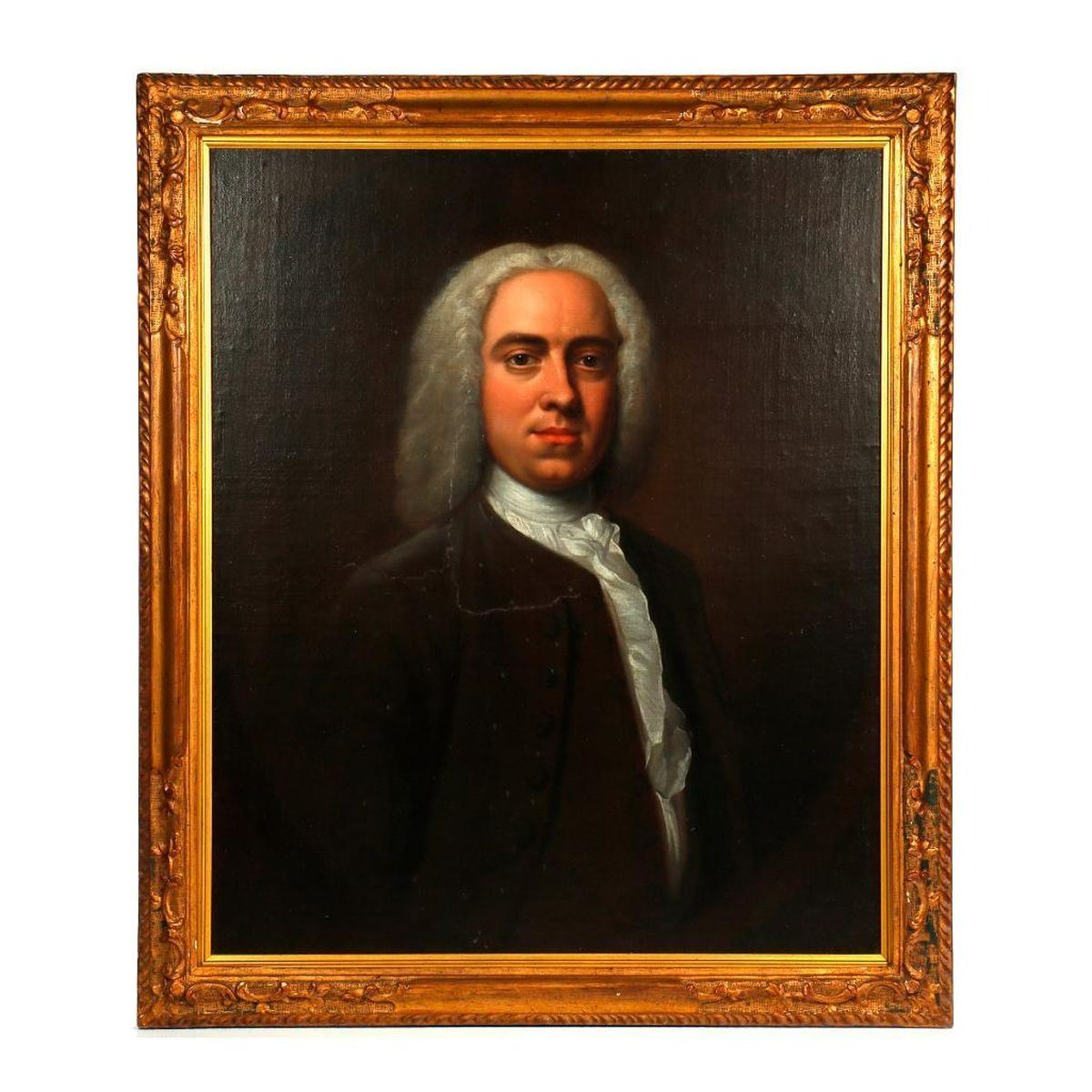 Artist: Unknown. Title/Subject: Portrait of a Gentleman in ruffled shirt. Size: 29 3/4in x 25in; 34 1/4in x 29 1/2in (frame). Year Created: c. 18th/19th century. Signature: Unsigned. Medium/Ground: Oil on canvas. Condition: There is a 10-in vertical/9-in horizontal tear/repair, laid on board; craquelure; scuffing/losses. Condition Report: All lots are sold as is and where is. Turner Auctions + Appraisals, LLC provides condition reports upon request to aid in your bidding decision. No statement regarding age, condition, kind, value, or quality of a lot, whether made orally at the auction or at any other time, or in writing in this catalog or elsewhere, shall be construed to be an express or implied warranty, representation, or assumption of liability. All sales are final, Turner Auctions + Appraisals, LLC does not give refunds based on condition. Turner Auctions + Appraisals, LLC does not perform any shipping or packing services. We do have a list of suggested shippers who gladly provide quotes prior to your bidding. Please visit our webpage for a list of recommended shippers.