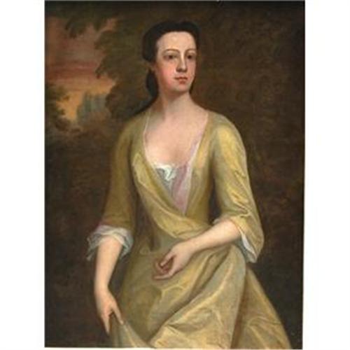 Portrait of a Lady in a Yellow Dress, 18th Century American Provincial School </em></td>
