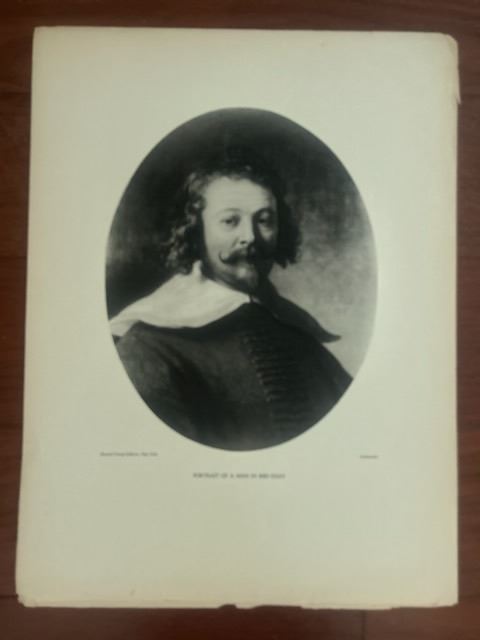 Antique reproduction of Rembrandt etching of a moustaced gentleman, on paper 16.5 " x 12.5", image approx.10 x 7.375"