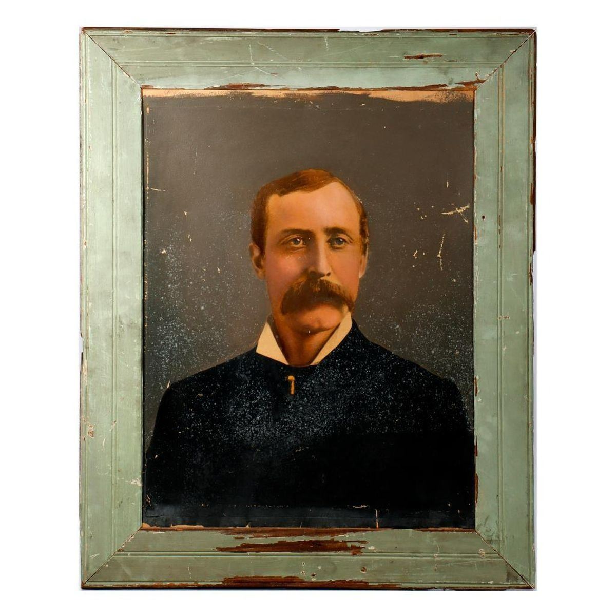 Artist: Unknown. Title/Subject: Portrait of a Man in a Black Suit with a Mustache. Size: 24in x 18in (image); 31in x 25in (framed). Year Created: C. 1900s. Signature: Unsigned. Medium/Ground: Painted photo on canvas adhered to paper board. Paint loss. Scratches, dirt, dust and other visiblesurface imperfections. Condition Report: All lots are sold as is and where is. Turner Auctions + Appraisals, LLC provides condition reports upon request to aid in your bidding decision. No statement regarding age, condition, kind, value, or quality of a lot, whether made orally at the auction or at any other time, or in writing in this catalog or elsewhere, shall be construed to be an express or implied warranty, representation, or assumption of liability. All sales are final, Turner Auctions + Appraisals, LLC does not give refunds based on condition. Turner Auctions + Appraisals, LLC does not perform any shipping or packing services. We do have a list of suggested shippers who gladly provide quotes prior to your bidding. Please visit our webpage for a list of recommended shippers.