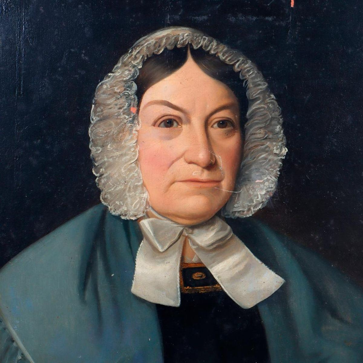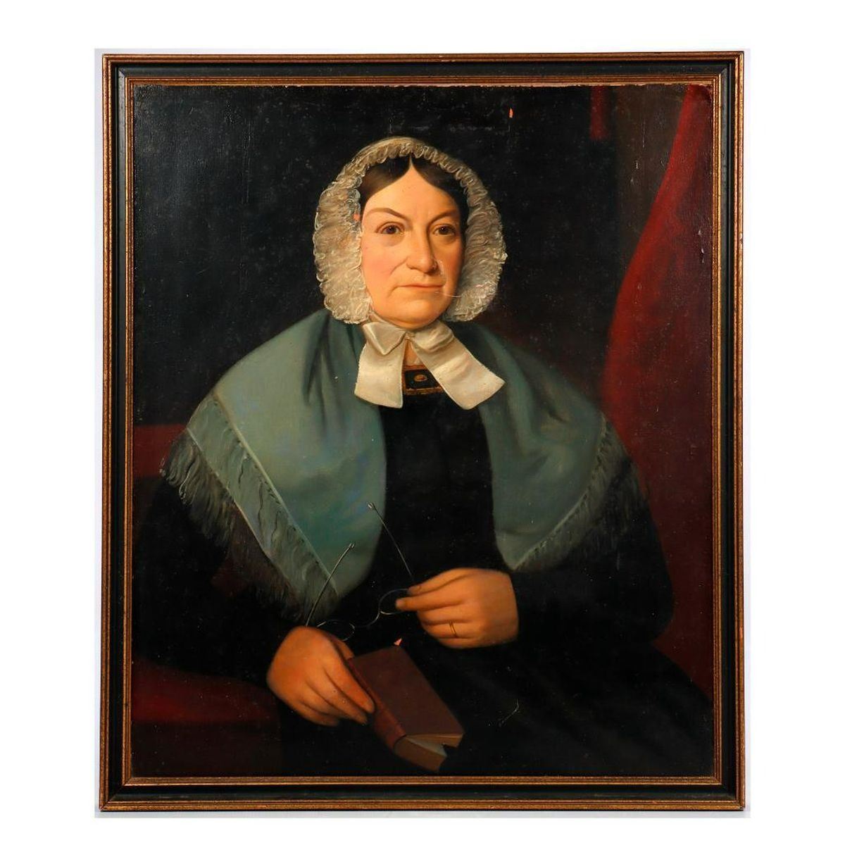 Artist: Unknown. Title/Subject: Portrait of a woman in blue shawl. Size: 29 1/2in x 24 1/2in; 32in x 27in (frame). Year Created: 19th century. Signature: Unsigned. Medium/Ground: Oil on canvas. Condition: Slight craquelure; flaking/losses, surface scratching/scuffing. Condition Report: All lots are sold as is and where is. Turner Auctions + Appraisals, LLC provides condition reports upon request to aid in your bidding decision. No statement regarding age, condition, kind, value, or quality of a lot, whether made orally at the auction or at any other time, or in writing in this catalog or elsewhere, shall be construed to be an express or implied warranty, representation, or assumption of liability. All sales are final, Turner Auctions + Appraisals, LLC does not give refunds based on condition. Turner Auctions + Appraisals, LLC does not perform any shipping or packing services. We do have a list of suggested shippers who gladly provide quotes prior to your bidding. Please visit our webpage for a list of recommended shippers.