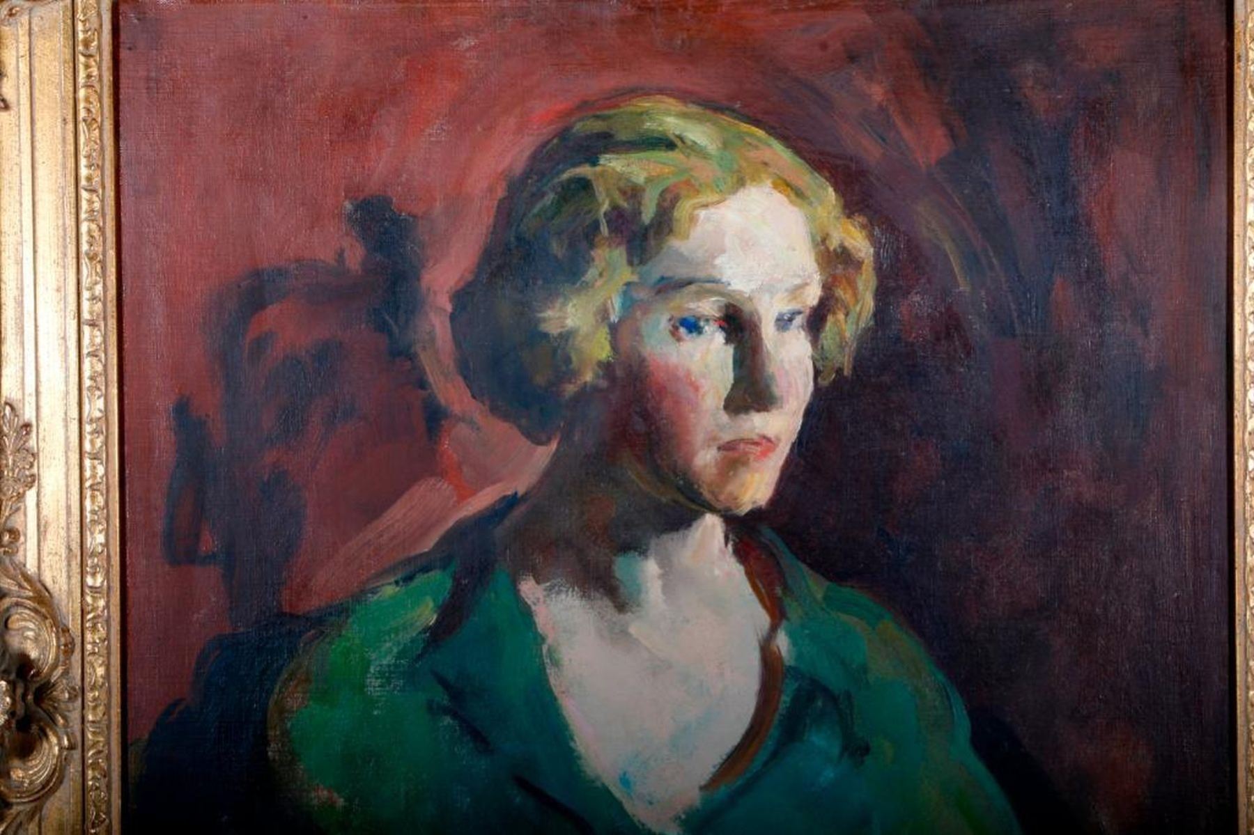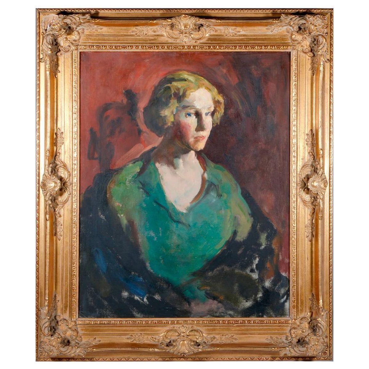 Artist: Unsigned. Title/Subject: Portrait of a lady. Signature: None. Medium: Oil on board. Size image: H - 30" W - 23". Size frame: H - 38 3/4" W - 32 3/4". Created: 20th century. Condition: Good.