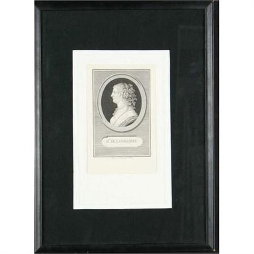 Portrait, original engraving entitled ?Mme De Lavalliere? by Augustin de Saint-Aubin