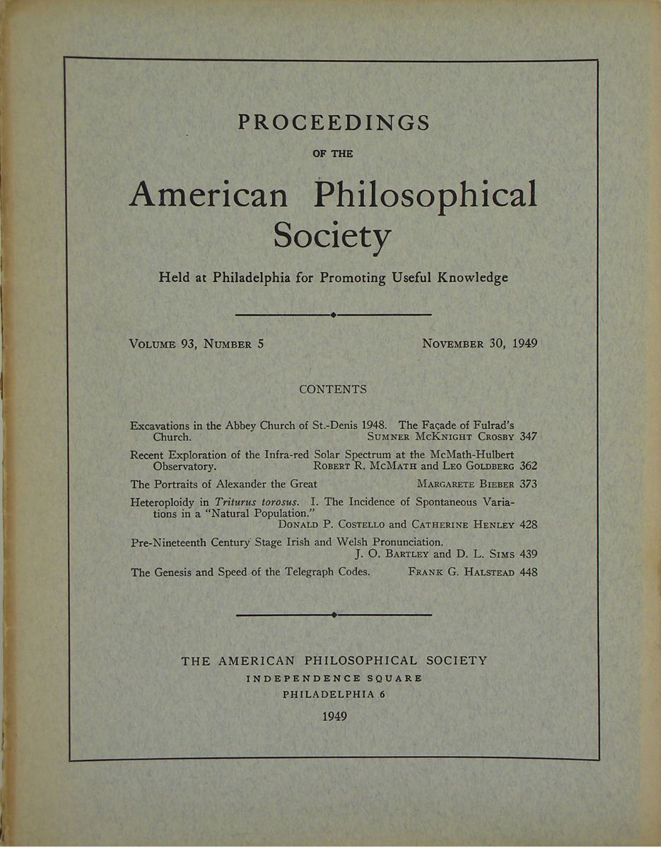 Bieber, Margaret. THE PORTRAITS OF ALEXANDER THE GREAT. In Proceedings of the American Philosophical Society, Volume 93, Number 5, 1949. Entire issue present. 4to, original printed card covers. (347)-458 pages [Bieber’s article comprises pages 373-427 and includes 27 plates, some depicting coins]. Spine darkened, else fine. Scarce and important. Clain-Stefanelli 3521: “Excellent comparative material in sculpture, cameos, etc.” Daehn 1241.