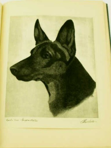 by Burt Cobb. A great book filled with Burt Cobb engraving or plates with various dog breeds. Book remains in good condition with slight loose binding. Mrs. Geraldine Rockefeller Dodge's German Shepard is one example.