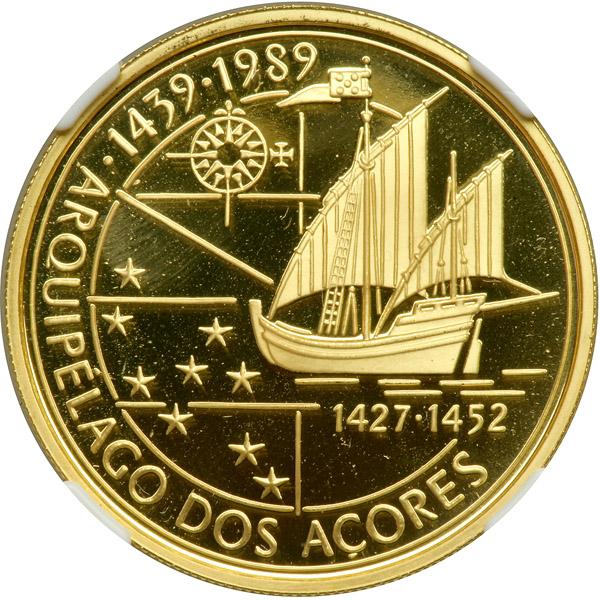 Portugal. 100 Escudos, 1989. Fr-164; KM-648b. Weight 0.7075 ounce. Discovery of the Azores. NGC graded Proof 69 Ultra Cameo.