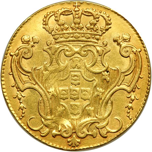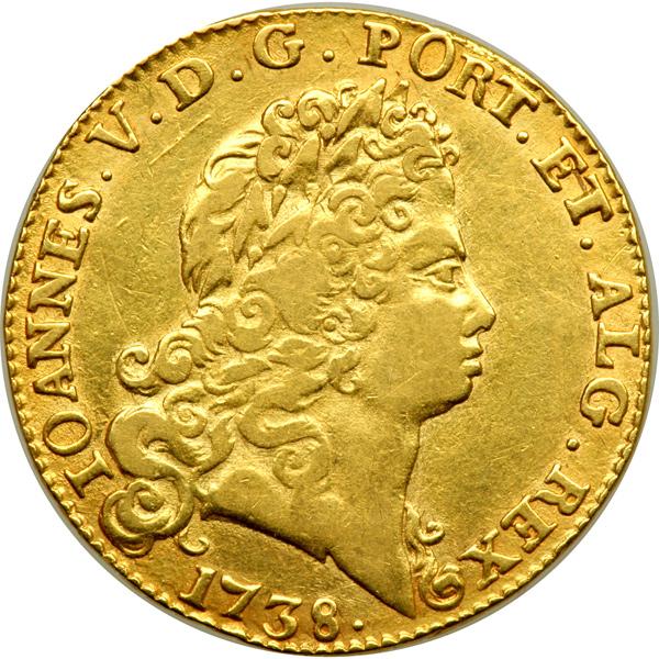 Portugal. 4 Escudos (Peca), 1738. Fr-86; KM-221. Joao V, 1706-1750. Laureate head right. Reverse: Crowned arms. Possibly removed from mount. Cleaned. Very Fine.
