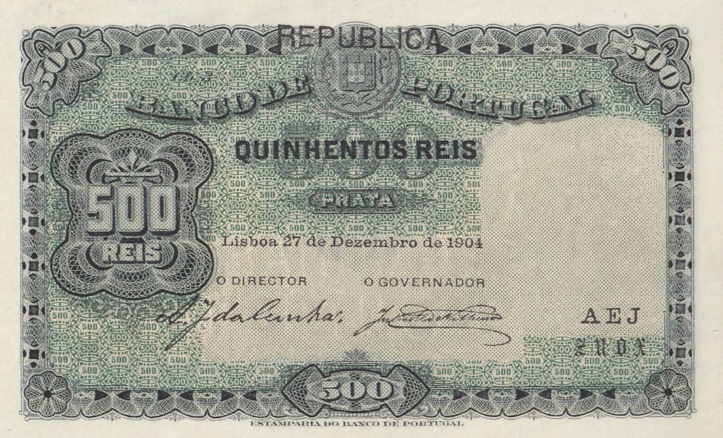 Portugal, 500 Reis, 1904, UNC, p105br/serial number: AEJ