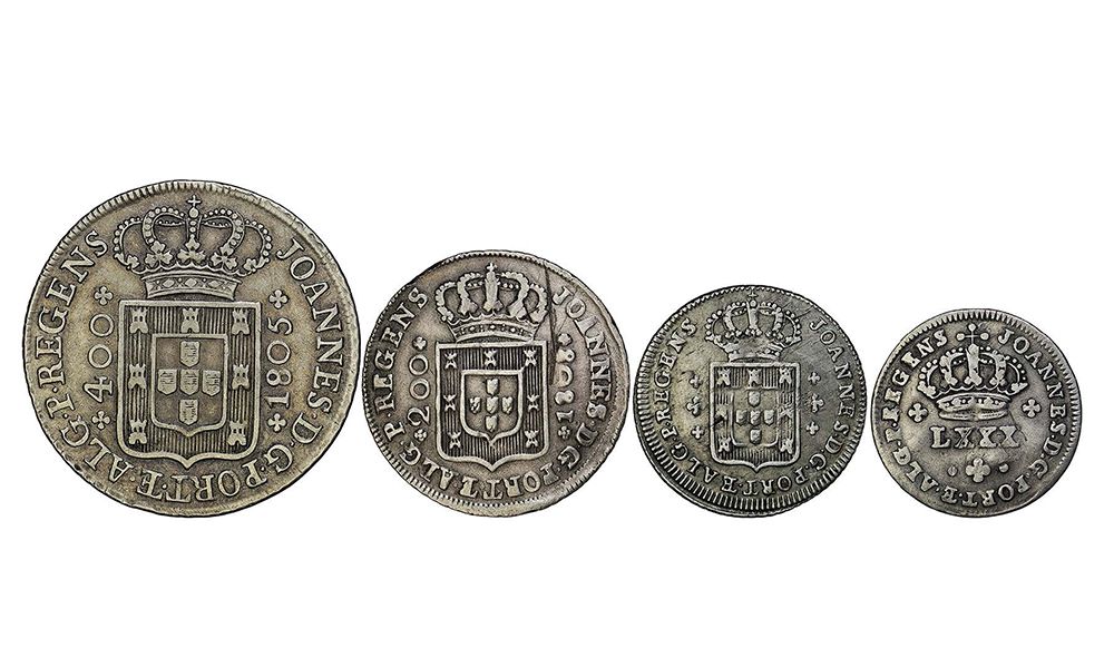 Cruzado novo 1805 2p, 1807 1p, 1808 1p EV, 1810 1p, 1812 1p, 1813 4p, 1815 (26.01, 25.05, 25.07, 25.09, 25.11, 24.05, 24.07); Doze Vinténs 1808 (21.02); Seis Vinténs (19.01); Tostão (17.02); Meio Tostão (13.01)