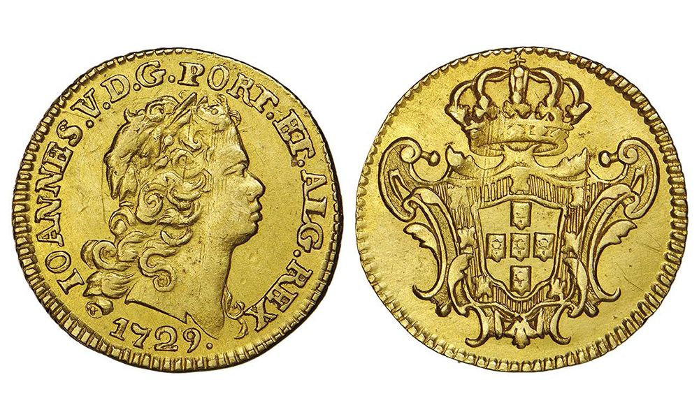 Ouro Meio Escudo 1729 2º tipo MBC+