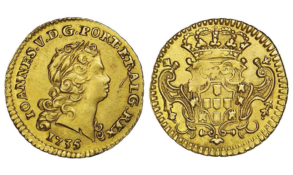 Ouro - Meio Escudo 1732, 4º tipo (G.109.13; JS J5.363)BC; Meio Escudo 1735 (G.109.14; JS J5.364) MBC; Meio Escudo 1736 (G.109.15; JS J5.365) cerceado