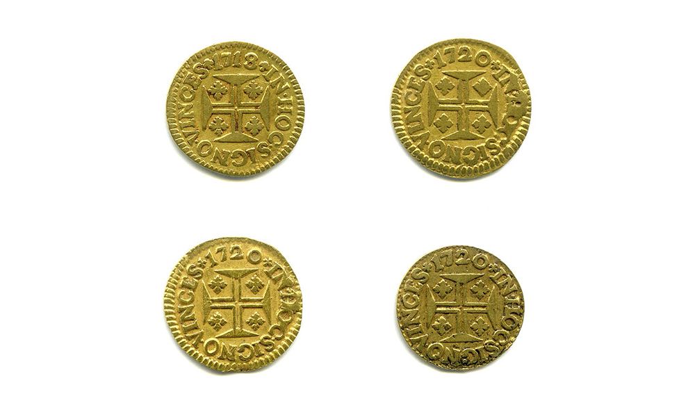 Ouro - Cruzado novo (Pinto) 1718 (G.83.01; J5.406) MBC; 1720 (G.83.03; J5.408) (x3) BC, MBC e BC+ cerceado