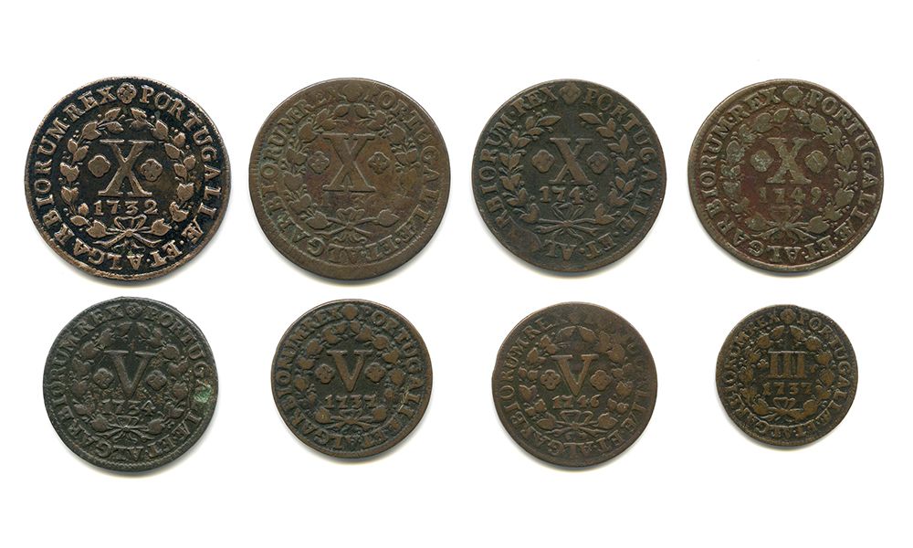 X Reis 1732 (34.05), 1736 (34.16), 1748 (35.17), 1749 (35.21); V Reis 1734 (18.10), 1737 (19.03), 1746 (19.16) e III Reis 1737 (13.05)