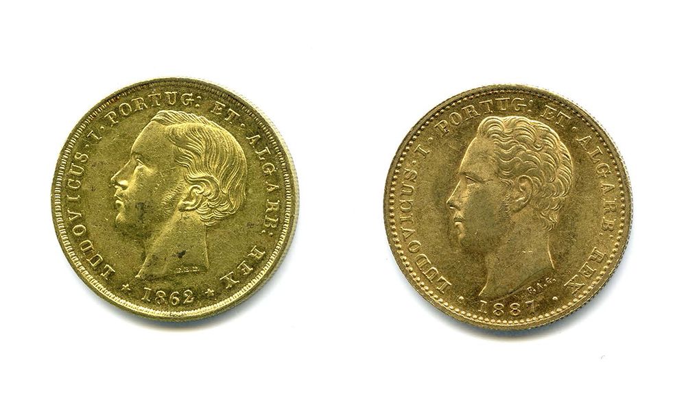 Ouro - 5000 Reis 1862 (15.01; Lu.12) MBC+ e 1887 (16.15; Lu.29) MBC+